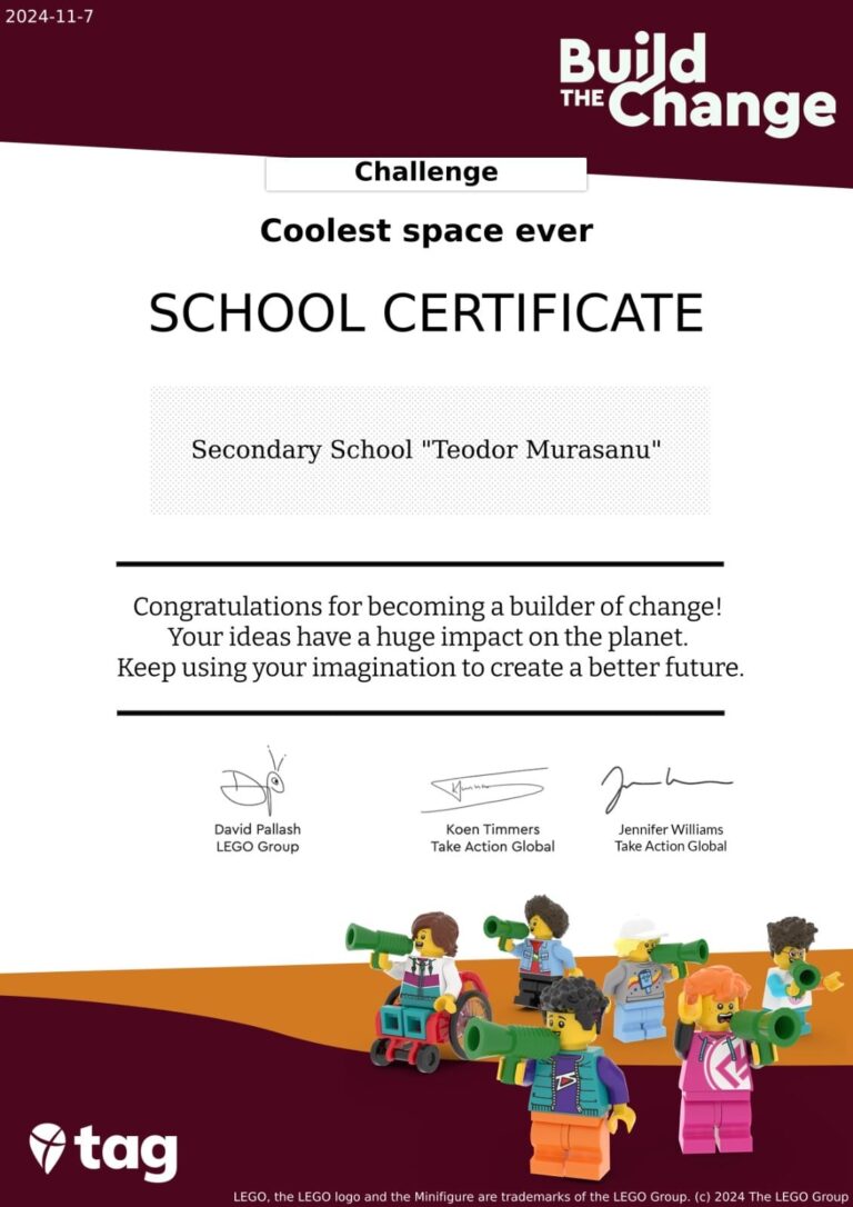 Suntem extrem de mândri să anunțăm că echipa școlii noastre a obținut un nou certificat: Challenge – Coolest Space Ever